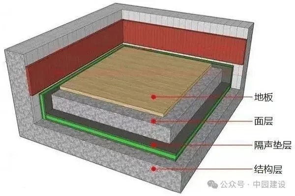 浮筑樓板,從其命名便可探知一二,它的設(shè)計原理在于使面層如同漂浮于基層之上,不與結(jié)構(gòu)層進行直接接觸,以此方式有效削弱聲音的傳遞效果。這一效果的實現(xiàn),依賴于在面層與基層之間精心增設(shè)的隔聲層。