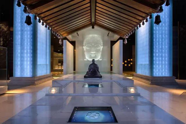 映入眼簾的便是“千年對(duì)望”的時(shí)空長廊,踏上步道,腳下七步生蓮,立柱搖鈴輕響,空氣中還有熏香的味道。而長廊盡頭,是玄奘法師面對(duì)著佛陀微笑。