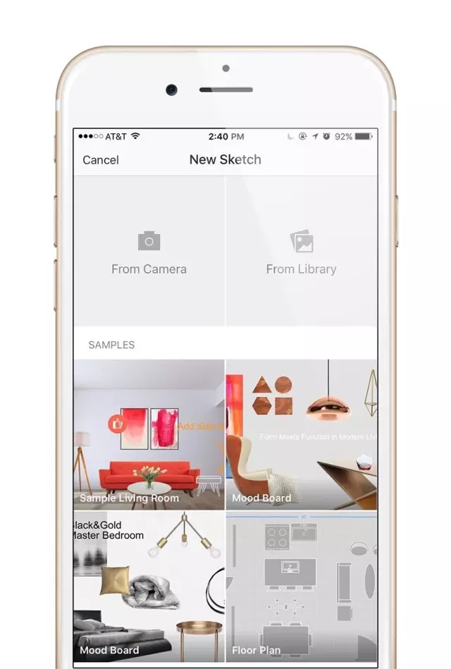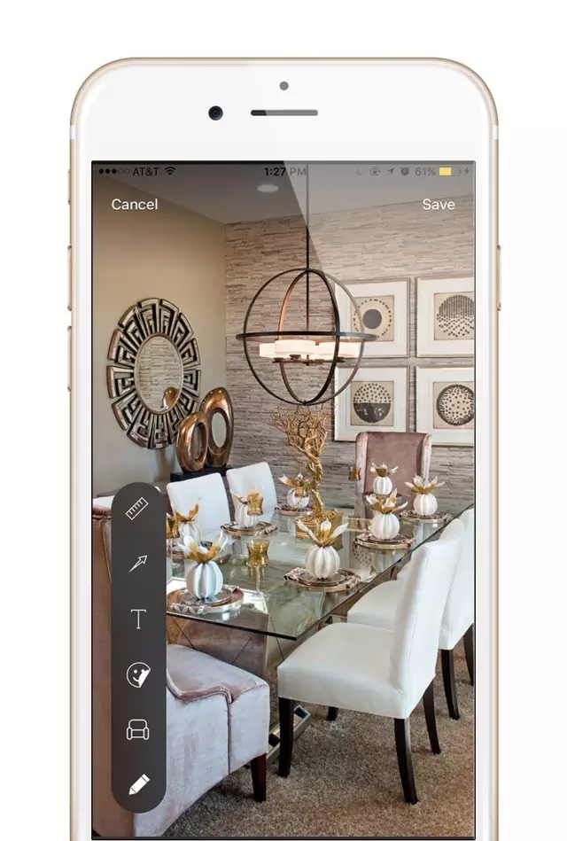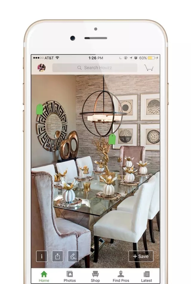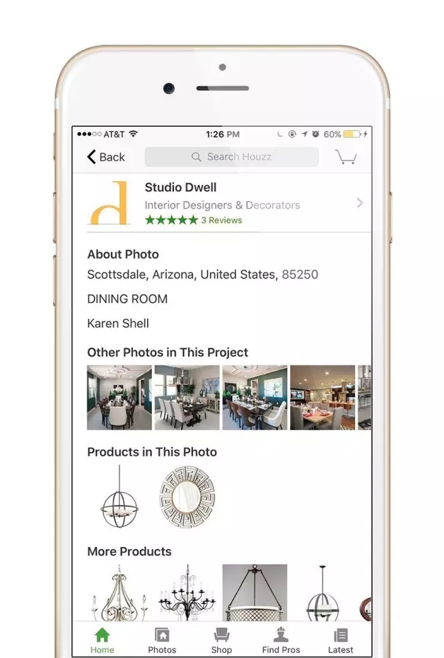 Houzz還有個(gè)很有趣的功能,就是可以把你想買的家具“放到”你家里試一試效果,比如這個(gè)燈~