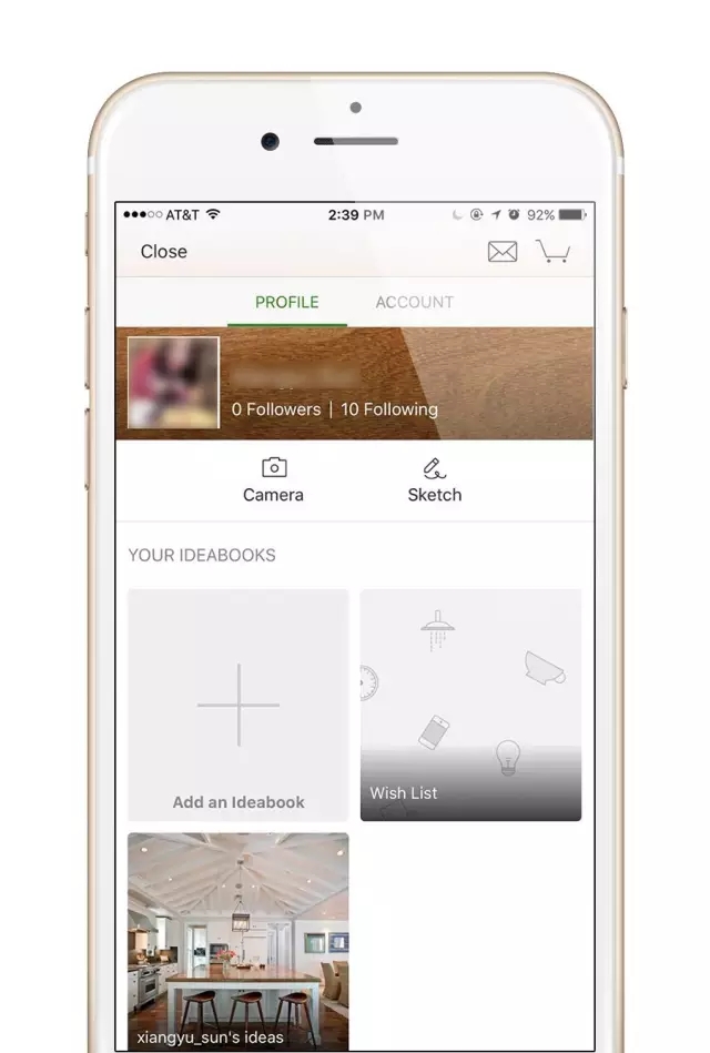 點(diǎn)擊主頁左上角自己的照片,就可以進(jìn)入個(gè)人主頁。在這里你可以看到自己的心愿單、自己做的案例圖。