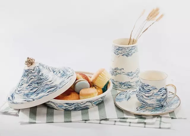 傳統(tǒng)的水波紋圖案,在器具之間流淌