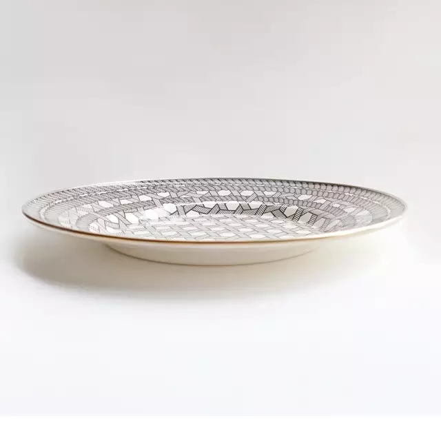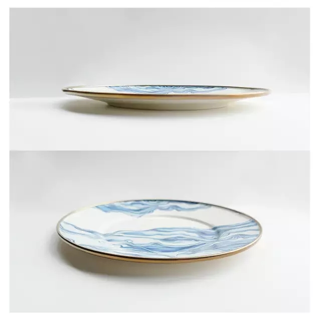 八寸淺口盤,水波似的紋樣,在餐桌上,墻壁上肆意變幻,好像站在海邊。