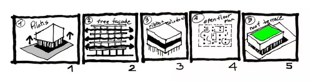 此后,柯布的建筑理念逐步完善,在1926年提出了新建筑五原則,它們是: