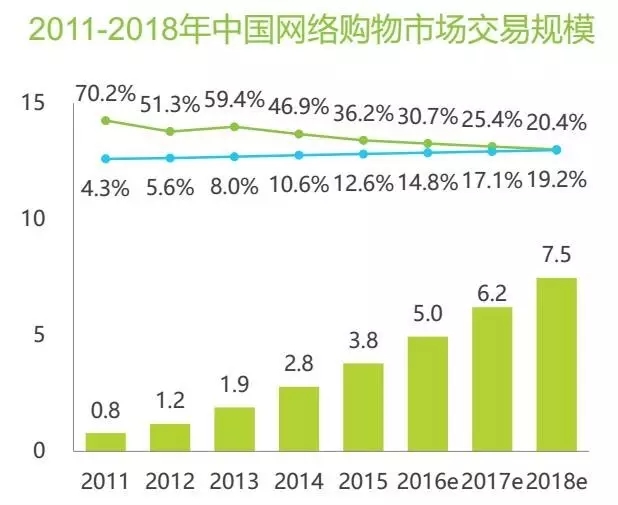 2015年中國(guó)網(wǎng)絡(luò)購(gòu)物市場(chǎng)交易規(guī)模達(dá)3.8萬億元,較去年增長(zhǎng)36.2%,繼續(xù)保持穩(wěn)定的增長(zhǎng)水平,在綜合電商格局已定的情況下,一些企業(yè)瞄準(zhǔn)家裝、母嬰、醫(yī)療等垂直電商領(lǐng)域深耕,這些將成為網(wǎng)絡(luò)購(gòu)物市場(chǎng)發(fā)展新的促進(jìn)點(diǎn)。用戶網(wǎng)購(gòu)商品,也由最初的小商品,向家居建材、家電等大型商品發(fā)展。