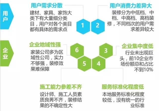 傳統(tǒng)家裝產(chǎn)業(yè)鏈條長(zhǎng)、環(huán)節(jié)多,涉及到設(shè)計(jì)師、裝修公司、施工隊(duì)、材料商等眾多對(duì)象,消費(fèi)者要一對(duì)一對(duì)接,需要耗費(fèi)大量的時(shí)間、精力與自己,也造成行業(yè)效率低下。行業(yè)期待有能提升效率、整合各環(huán)節(jié)的一站式家裝平臺(tái)出現(xiàn)。