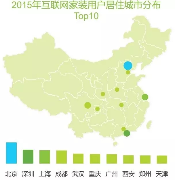 目前互聯(lián)網(wǎng)家裝用戶主要集中在一二線城市,其中北京、深圳、上海是互聯(lián)網(wǎng)家裝用戶數(shù)最多的城市。一二線城市人口比較密集,經(jīng)濟(jì)相對(duì)發(fā)達(dá),裝修需求交到;且一二線城市互聯(lián)網(wǎng)發(fā)達(dá),是互聯(lián)網(wǎng)家裝企業(yè)目前主要的發(fā)力市場(chǎng)。供需雙方共同拉動(dòng)了一二線城市互聯(lián)網(wǎng)家裝市場(chǎng)發(fā)展。