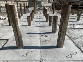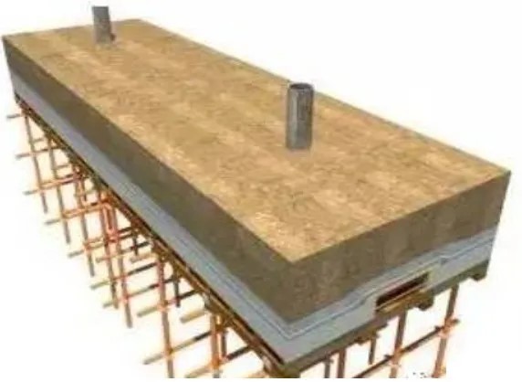 通過(guò)塔吊將預(yù)制蓋板吊至后澆帶指定位置,人工進(jìn)行安放,預(yù)制蓋板按照從后澆帶一側(cè)向另一側(cè)依次安放的順序,預(yù)制蓋板每隔3米放置一個(gè)有ф300的圓孔的蓋板,且在后澆帶端部及拐彎處放置一個(gè)有圓孔的蓋板。