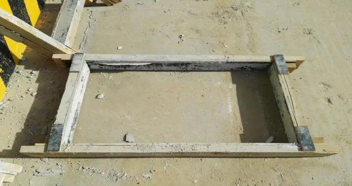 模具采用木方進(jìn)行制作,預(yù)制蓋板規(guī)格1.2m*1.2m*0.15m(長(zhǎng)*寬*高),模具總寬度尺寸比后澆帶寬度寬40cm,長(zhǎng)度為1.2m。模具高度15cm。模具制作完成后可周轉(zhuǎn)使用,在使用過(guò)程中需注意對(duì)模具的成品保護(hù)。