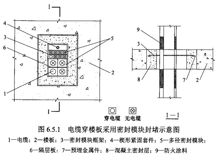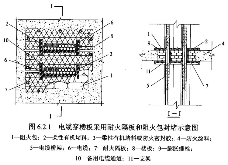 依據(jù)DL/T 5707《電力工程電纜防火封堵施工工藝導(dǎo)則》,電纜穿樓板防火封堵可采用五種方法:①耐火隔板和無機(jī)堵料封堵、②耐火隔板和阻火包封堵、③防火復(fù)合板封堵、④防火涂層板封堵、⑤密封模塊封堵,封堵原理和具體做法總結(jié)如下,以供大家在工程中結(jié)合規(guī)范參考實施。