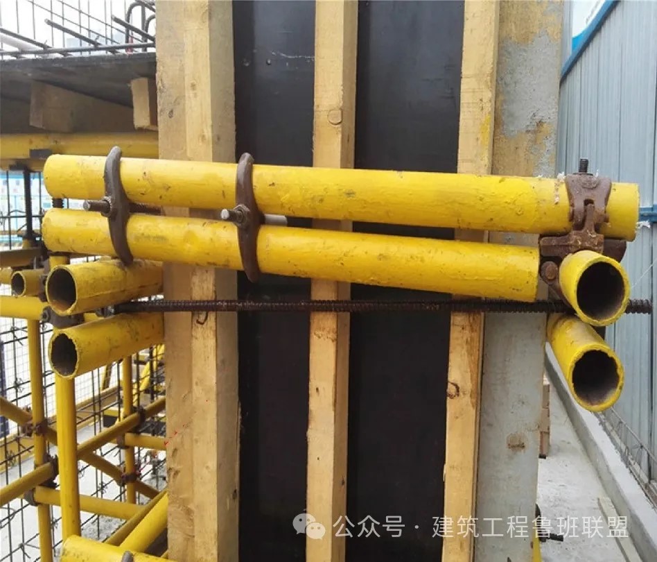 建筑工程中對拉螺桿常用于柱子、墻體內(nèi)、外側模板、梁側模之間的拉結,承受混凝土的側壓力和其他荷載,確保內(nèi)外側模板的間距能滿足設計要求,同時也是模板及其支撐結構的支點。因此對拉螺桿的布置對模板結構的整體性、剛度和強度影響很大。